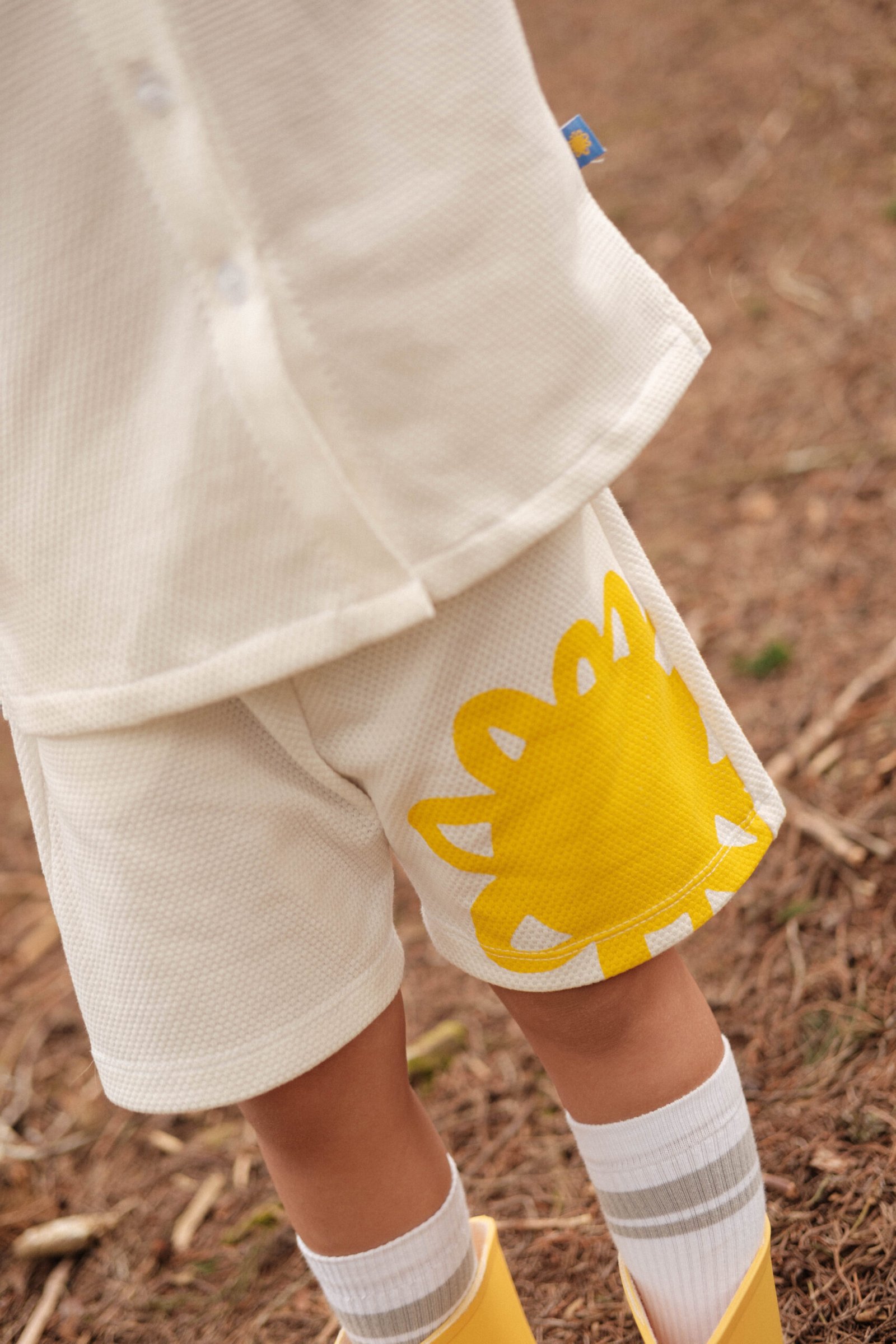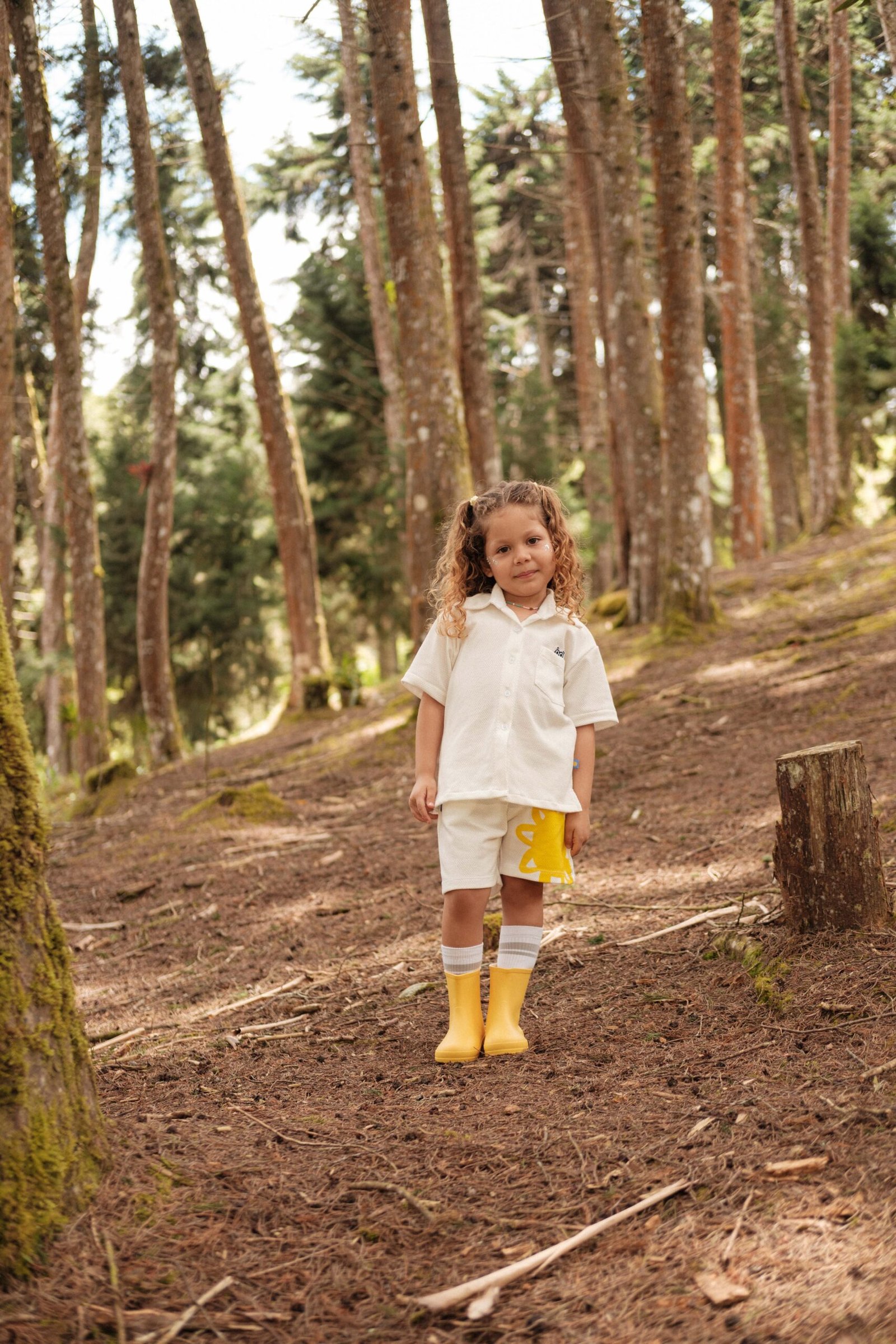 Un set blanco fresco y luminoso, con camisa y shorts de corte relajado, perfecto para pequeños exploradores que brillan con su propia chispa. Suave, cómodo y con un estilo street fun que combina con cualquier aventura.