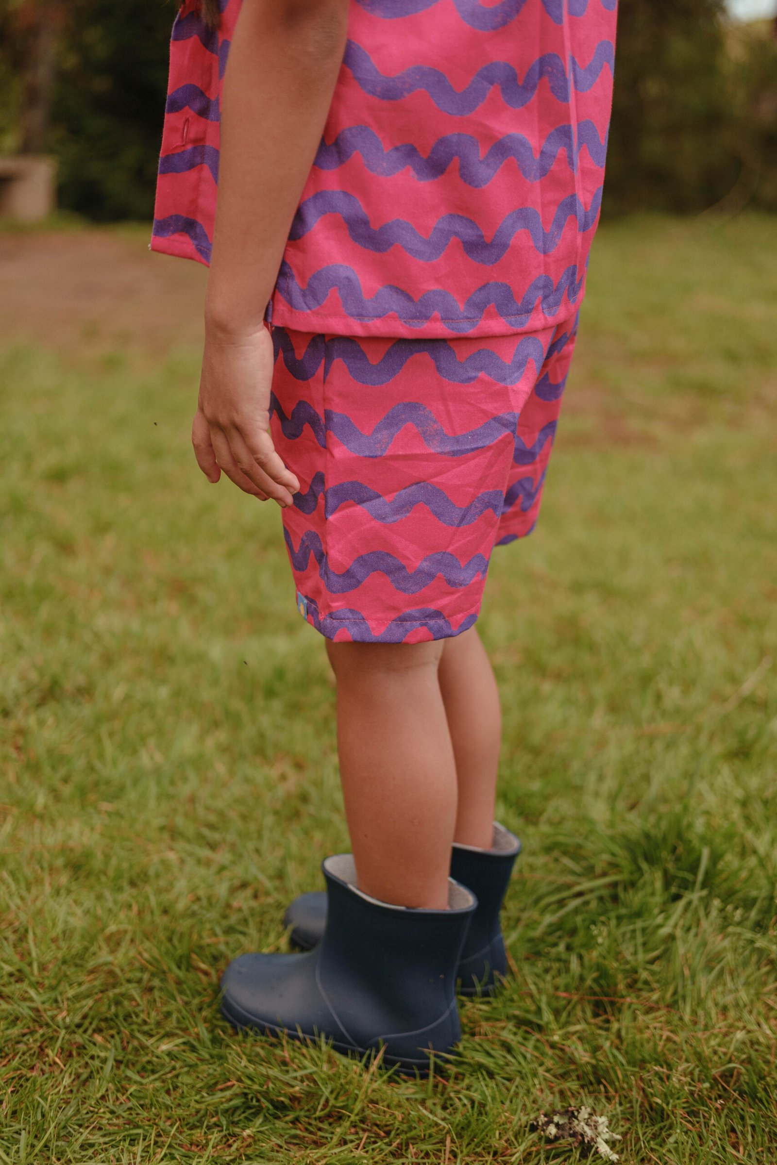 Short unisex en tejido ligero, con estampado ondulado en tonos fucsia y azul que aporta un look divertido y fresco. Cómodo, suave y perfecto para días de juego sin fin.